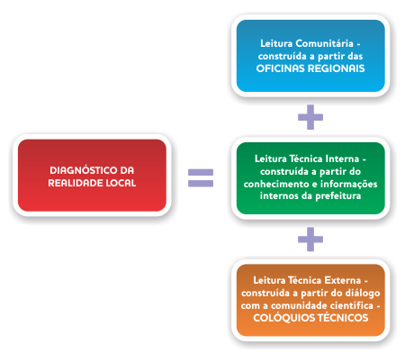 As contribuições técnicas internas decorrem do grupo de servidores da própria Prefeitura que, desde 2013, vem levantando dados em campo e em seus próprios cadastros, organizando-os e interpretando-os para produzir uma leitura técnica interna do território municipal;